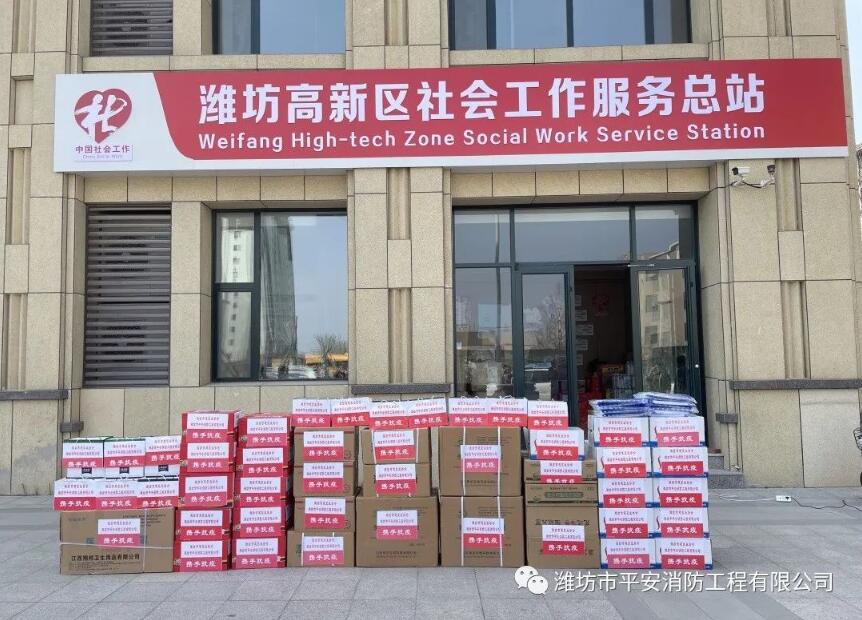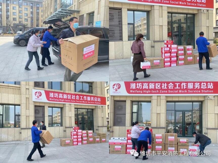 這些防疫物資將捐贈(zèng)到濰坊市委疫情防控指揮部、濰坊市社會(huì)福利院、濰坊市兒童福利院、社區(qū)防疫前線等有需求的單位和組織,我公司定會(huì)全力保障疫情防控工作,為打贏疫情防控阻擊戰(zhàn)貢獻(xiàn)力量。萬(wàn)眾一心,攜手抗疫,我們一直在行動(dòng)!